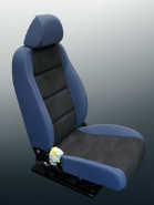 新しい表皮材の特性に合わせて、シートカバーの型取り・縫製・仮張り・調整を行う